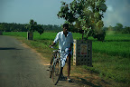 Today we visited family friends (or at least their house/compound) in the country. We went inland a bit and took a national highway north (I think). This road is very new and quite modern, two lanes each way with a bit of a median and even road signs, which elicited quite the excited commentary from Sridevi! This is a big deal as she remembers when this was a single track dirt road as a kid. At any rate it was a treat to leave the city behind. The custom here is that as you approach a vehicle you honk the horn before passing, even on the highway.